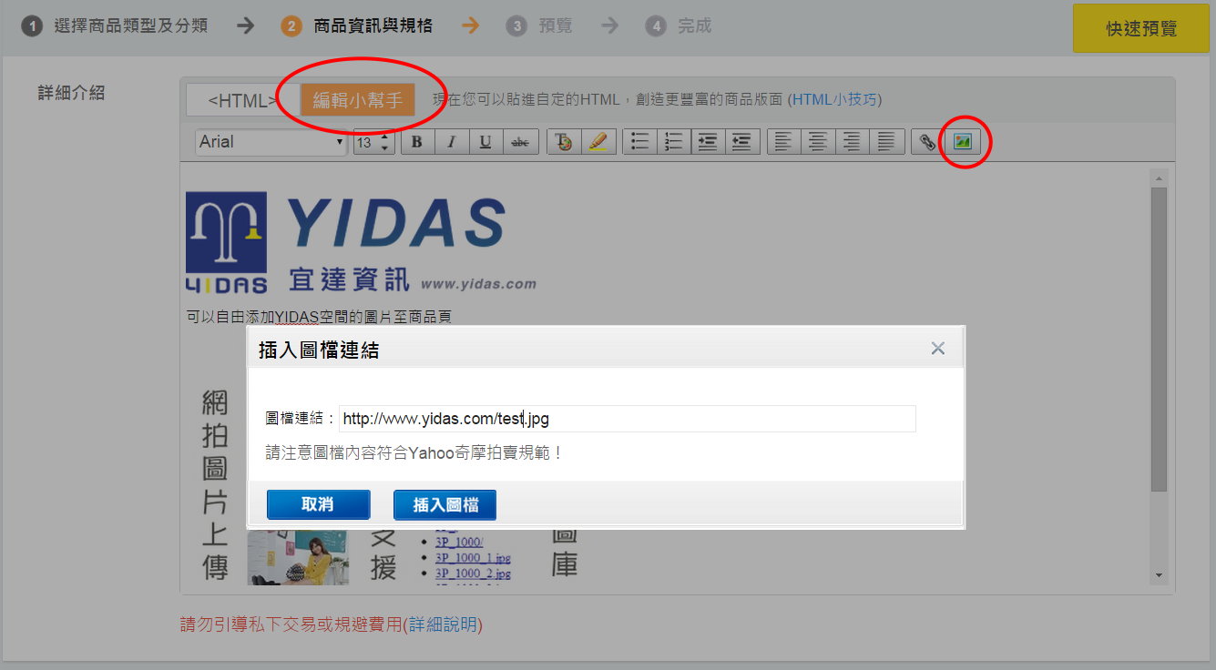 1. Yahoo奇摩拍賣 如何使用YIDAS空間圖片?